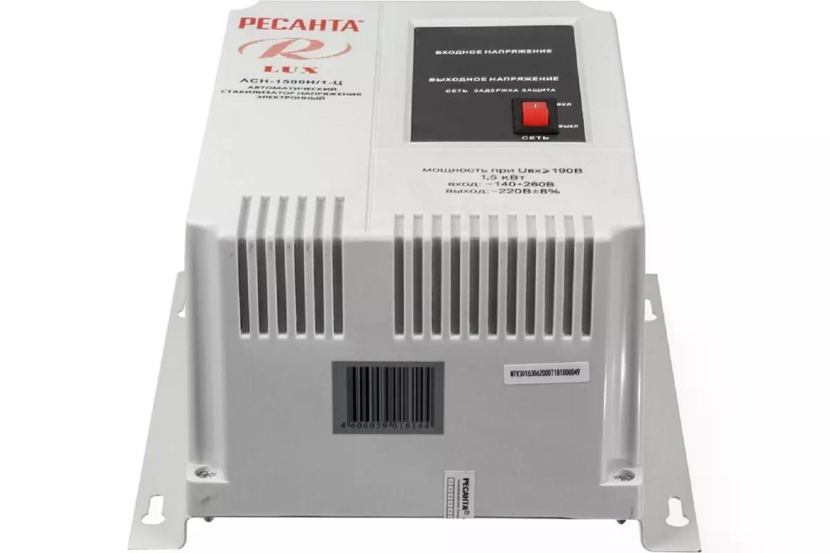 Стабилизатор напряжения Ресанта серии LUX АСН-1500Н/1-Ц — это современное релейное устройство, предназначенное для поддержания постоянного уровня напряжения и надежной защиты бытовой техники от вредных скачков и перепадов в электросети. Однофазный стабилизатор рассчитан на обеспечение безопасной работы электроприборов суммарной мощностью до 1,5 кВт, выводя стабильное напряжение 220В с высоким уровнем точности ±8%. Предельная сила тока, которую выдерживает устройство, равна 7,9 А.