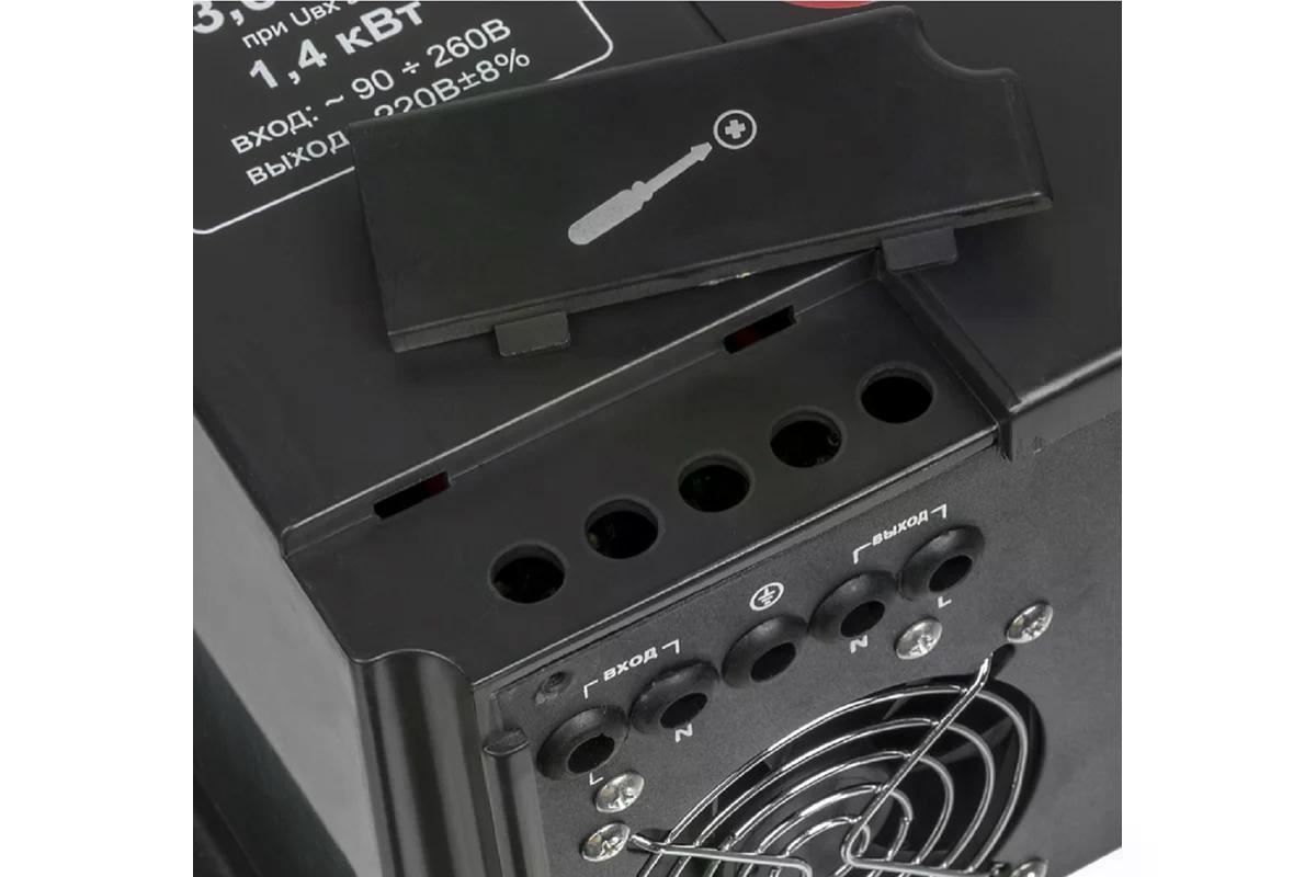 Рабочий диапазон входного напряжения: 90–260 В, при выходе напряжения за установленные пределы стабилизатор автоматически отключает питание, защищая подключённое оборудование от повреждений. Кроме того предусмотрены и другие защитные функции: автоматическое отключение при высоком напряжении (высоковольтная защита 245±5 В), защита от перегрева, короткого замыкания и перегрузки.