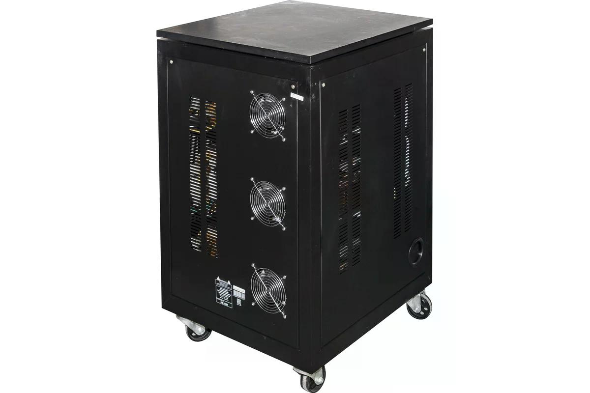 Прочная конструкция стабилизатора оснащена надёжным корпусом с классом защиты IP20. Напольное размещение дополнено удобными транспортировочными колёсами, что значительно упрощает перемещение устройства при необходимости. Скорость стабилизации 30 В/с обеспечивает оперативное реагирование на изменения входного напряжения.