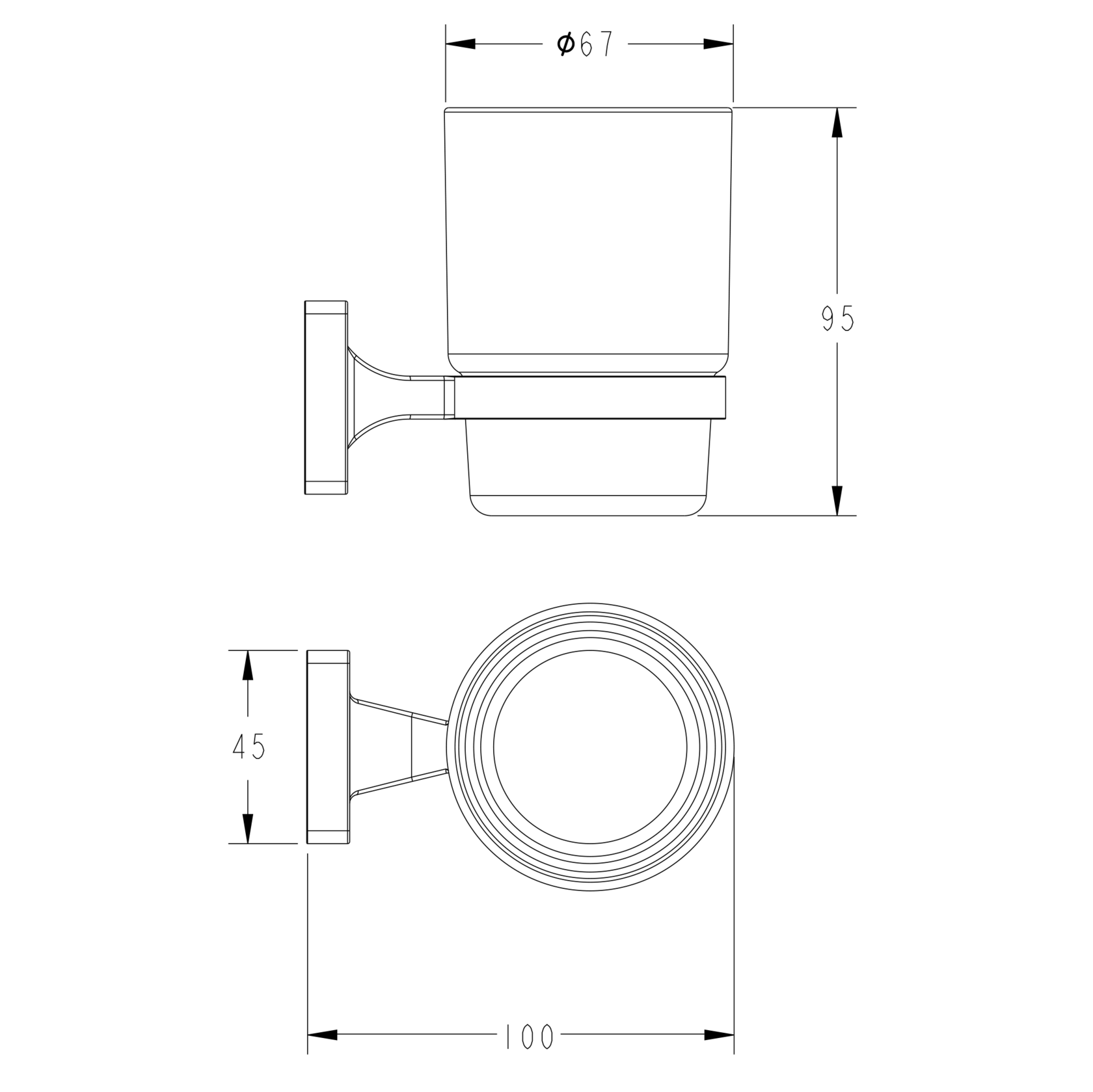 стакан универсальный из матового стекла для ванной комнаты настенного монтажа, L=100 мм, H=95 мм