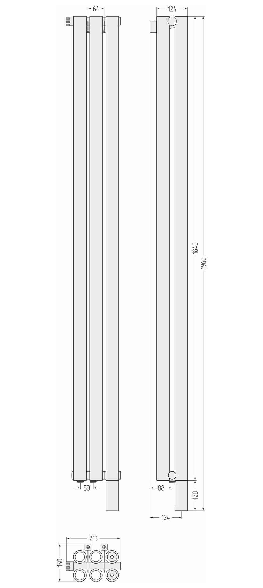 Стальной радиатор Сунержа Эталон-00 EU50 1800x213 3 секции матовый чёрный (31-0335-1803)