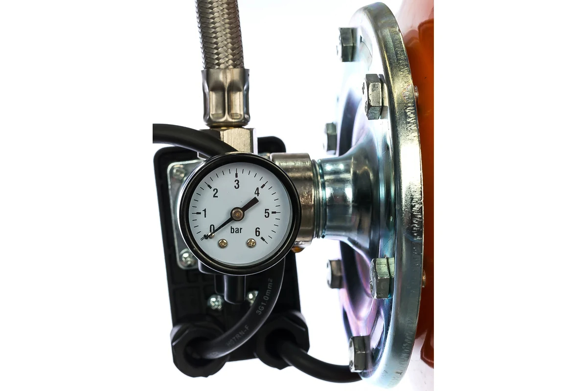 Гидроаккумулятор объемом 24 л применяется для стабилизации давления в системе и уменьшения частоты включений насоса. Он предотвращает резкие скачки давления и продлевает ресурс насоса, сокращая число его запусков и остановок.