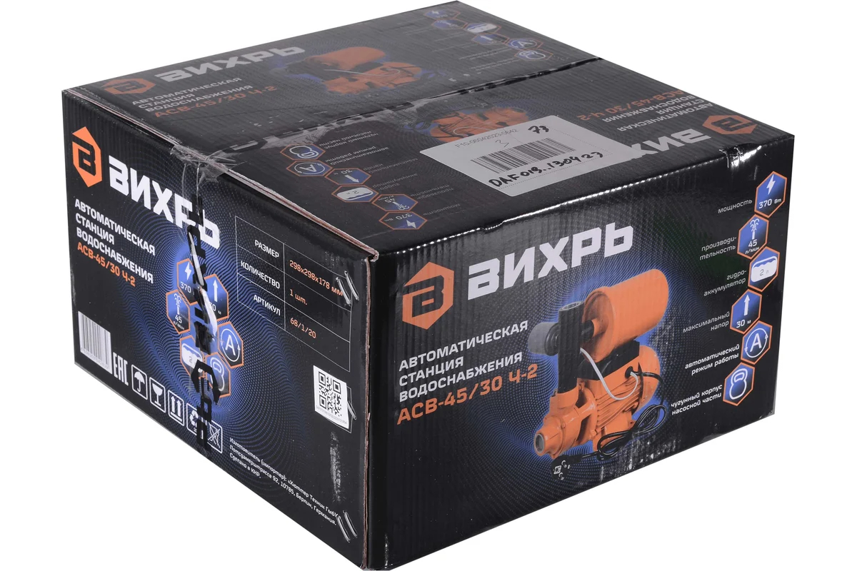 Автономная станция водоснабжения Вихрь АСВ-45/30 Ч-2 [68/1/20] это устройство для бесперебойного водоснабжения. Станция автоматически включает и отключает насос при изменении расхода воды, что позволяет поддерживать оптимальное давление в системе.