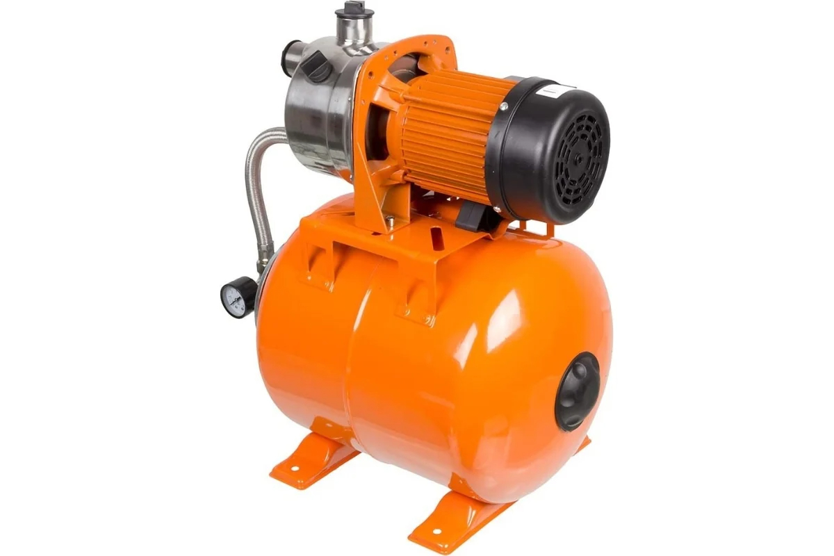 Станция водоснабжения оборудована гидроаккумулятором, который служит для стабилизации давления в системе и предотвращения резких скачков нагрузки на насос. Система автоматически регулирует уровень давления в трубопроводе, включая и отключая насос в зависимости от текущего уровня водопотребления. Эта функция позволяет минимизировать количество циклов запуска и остановки насоса, что снижает износ оборудования и продлевает общий срок его службы.