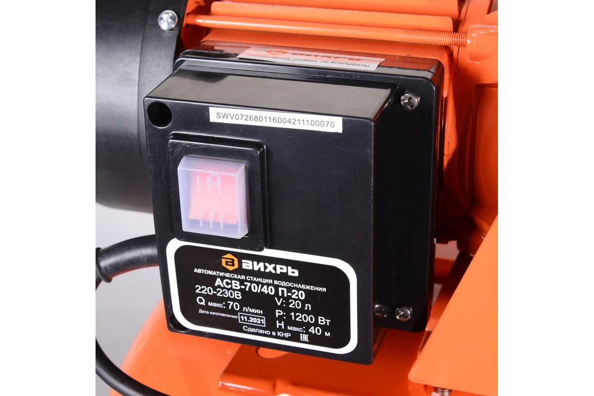 Насосная станция Вихрь АСВ-70/40 П-20 обладает высокой эффективностью, долговечностью и удобством использования, гарантируя надёжное и непрерывное водоснабжение в любых обстоятельствах.