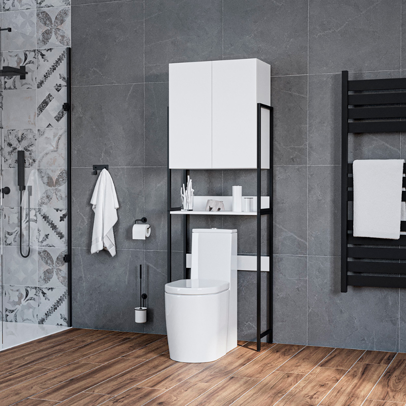 Открытый напольный стеллаж Комфорт торговой марки Melodia della vita с габаритными размерами 650х316х1885 это современное и эргономичное решение для вашей ванной комнаты. Стеллаж представляет собой открытое пространство снизу и закрытый шкаф сверху. Нижняя часть предназначена под унитаз, верхняя под бытовые принадлежности. Шкаф имеет две распашные двери, позади одна вкладная полка. Петли с доводчиками. Царга в нижней части регулируется по высоте в зависимости от расположения труб. Есть регулировка по высоте ножек в каркасе. Материал полок - ЛДСП Белый 16 мм, материал дверей шкафа - МДФ 16 мм в белой глянцевой ПВХ плёнке, материал каркаса - труба 20х20 мм в порошковой покраске. Прим: мет. стеллаж и шкаф с полками идут отдельно в разных коробках. Т.е. стеллаж необходимо собрать, соединив полки, каркас, шкаф. Шкаф идёт в собранном виде.