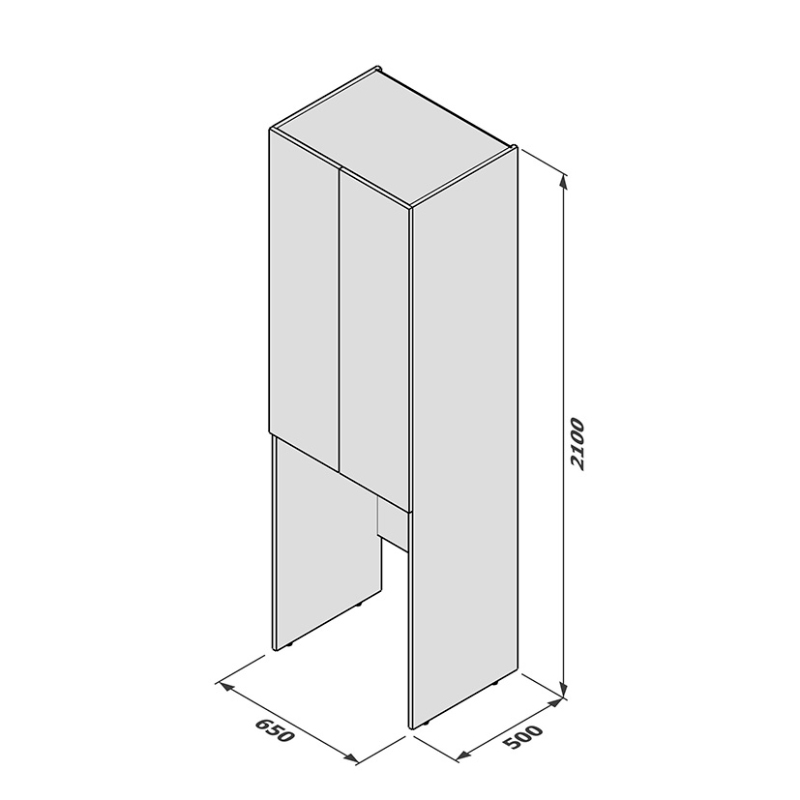 Напольный стеллаж Универсал 65 торговой марки Melodia della vita с габаритными размерами 650х500х2100 это современное и эргономичное решение для вашей ванной комнаты. Изделие представляет собой высокий пенал, который можно устанавливать у туалете над унитазом. В нижней части боковины и регулируемая по высоте задняя царга. В верхней части полноценный пенал с 2-мя распашными дверьми. Внутри четыре полки. Поставляется в собранном виде в комплекте с крепежом.