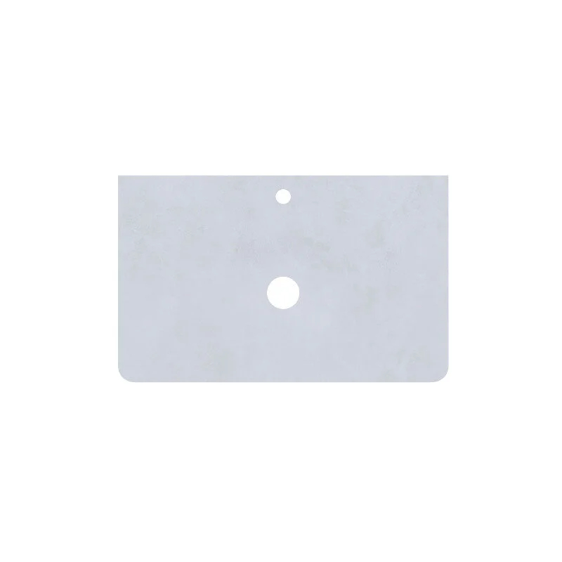 Столешница для тумбы из керамогранита. Размер (Д*Ш*В) - 502*802*11 мм. Цвет - светло-серый бетон. Столешница повторяет радиус скругления угла тумбы. Край столешницы запилен под 45 градусов и отполирован.