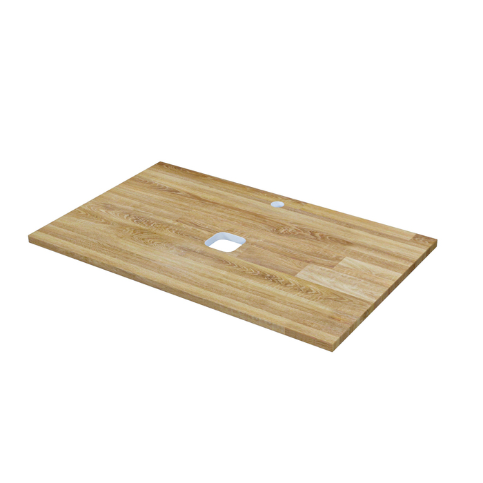 Прямоугольная столешница для тумбы из натурального срощенного горного дуба с текстурой настоящего дерева, обладает высокой влагостойкостью из-за трехслойного покрытия лаком. Размер - 80х50,5 см, оттенок - золотистый натуральный дуб. Совместима с любым накладным умывальником IDDIS.