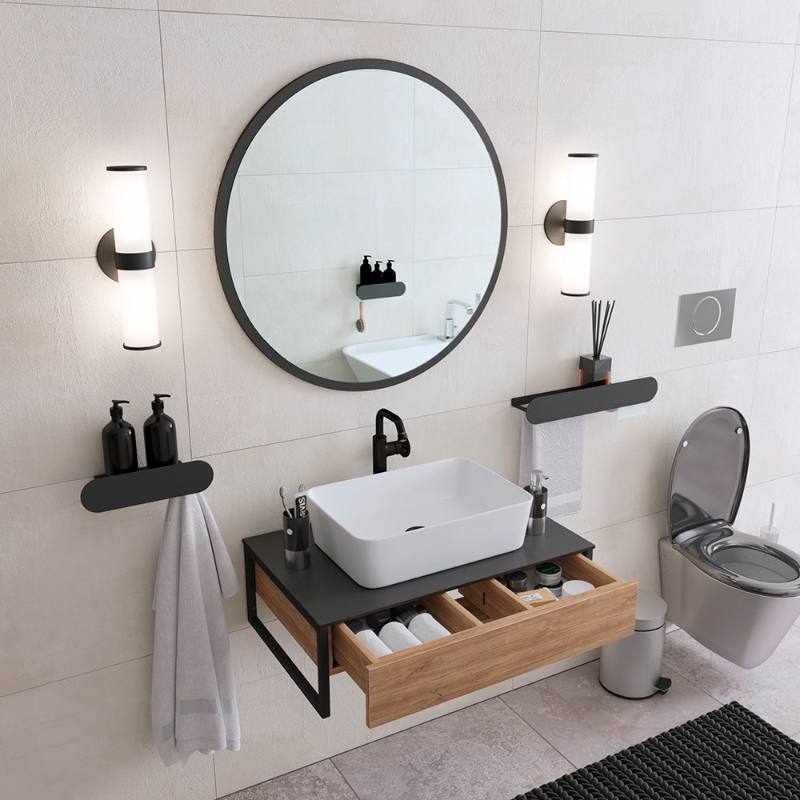 Столешница из керамогранита для тумб из металла шириной 600мм для монтажа с любой накладной раковиной подходящего размера.
