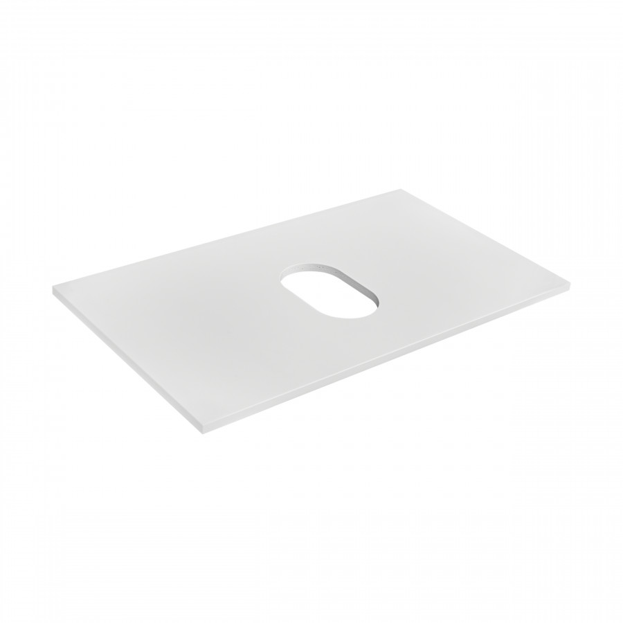 Столешница из влагостойкой ламинированной ДСП в цвете белый глянец, окрашенной полиэфирной краской ультрафиолетового отверждения, обладает универсальным современным дизайном. Она подойдет для комплектации тумб коллекций The Gap, Domi, Victoria накладными раковинам