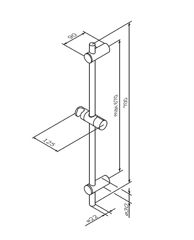 Штанга снабжена держателями (регулируемые по высоте держатели душевой штанги регулируемый в трех плоскостях держатель ручного душа) линии которых повторяются во всей коллекции подчеркивая единую концепцию дизайна.