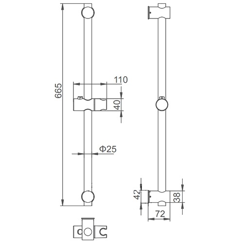 Стойка для душа LEDEME L78001-3 изготовлена из нержавеющей стали, предназначена для крепления душевой лейки с гибким шлангом и других аксессуаров, длина штанги 665 мм, диаметр 25 мм, в комплекте необходимый крепеж для монтажа на стену.