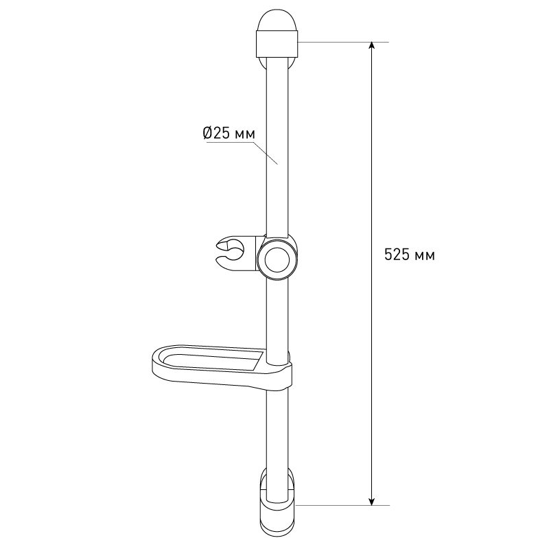 Стойка для душа Melodia 60 см диаметр 25 мм, c мыльницей, хром (MKP20076BL)