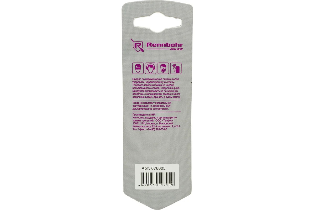Сверло по керамике RENNBOHR широко применяется для сверления отверстий в кафеле, керамической плитке и стекле.
