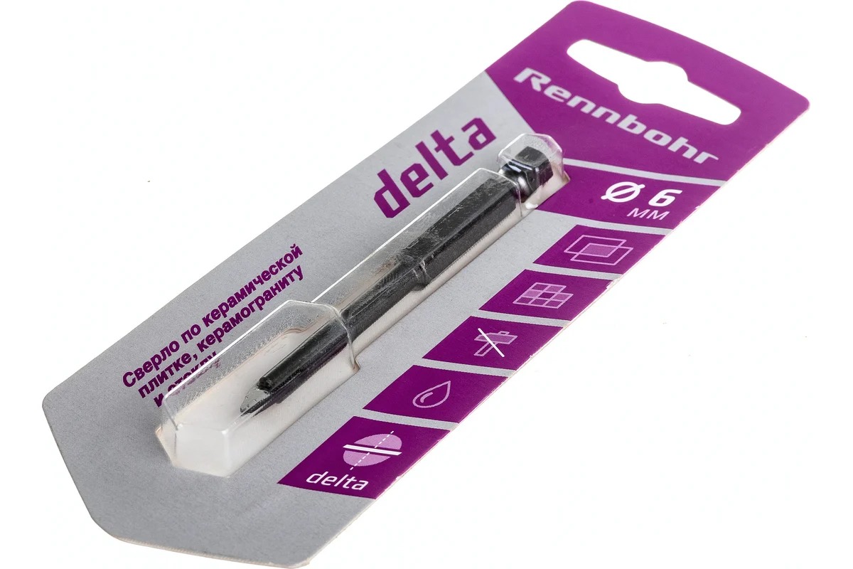 Сверло по стеклу и керамике Rennbohr Delta 6 мм. (2-х гранное) (676006)