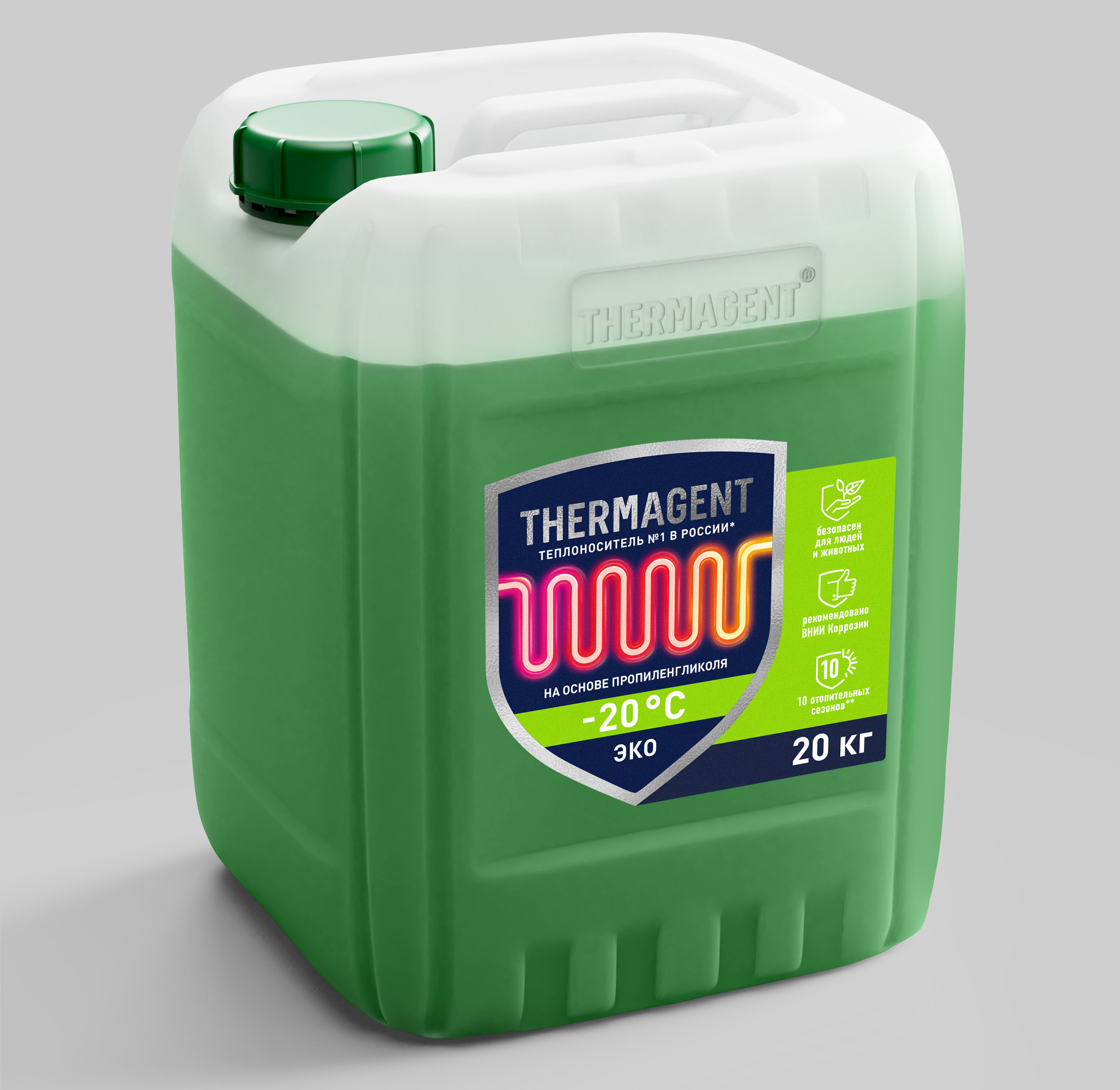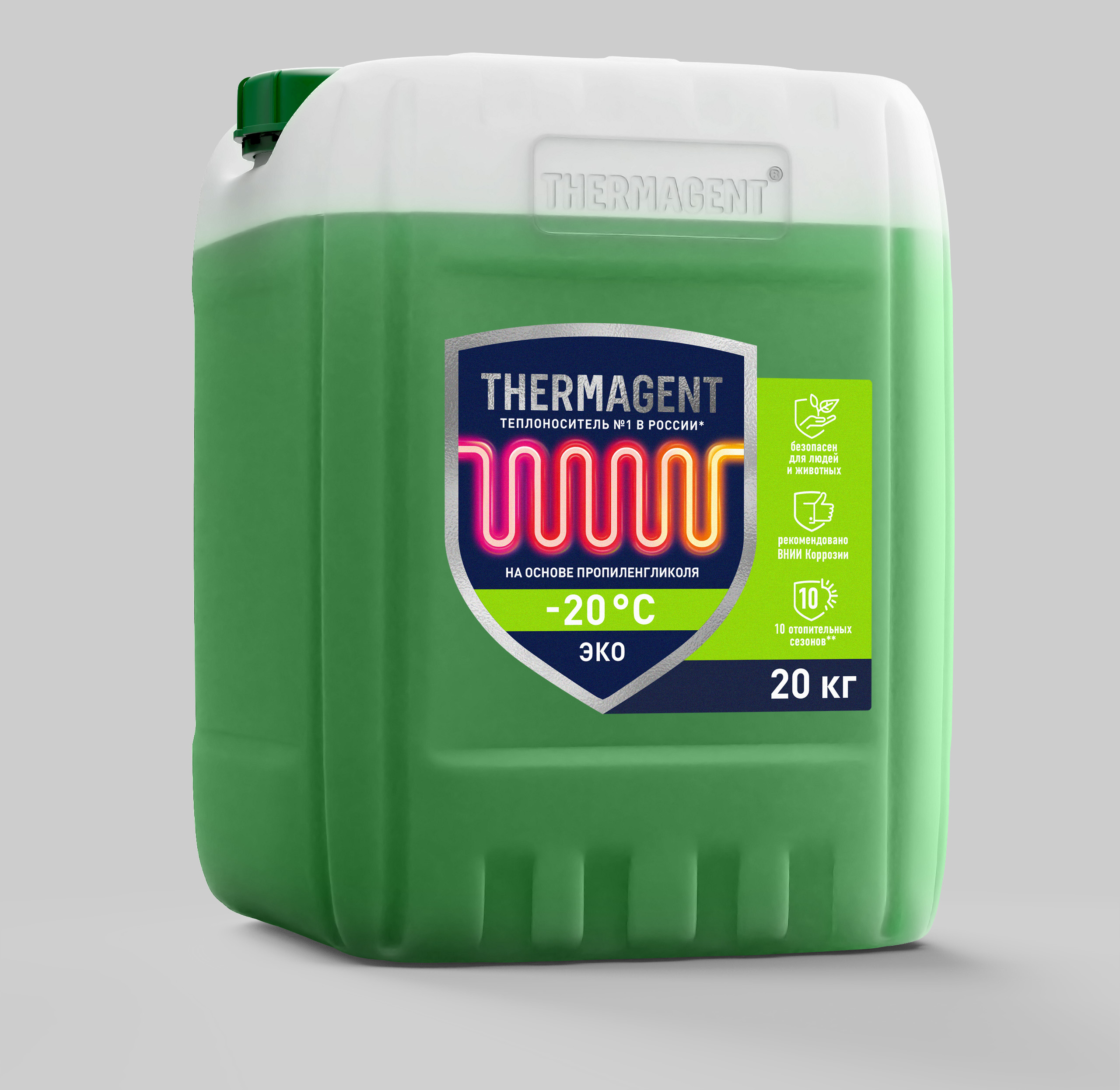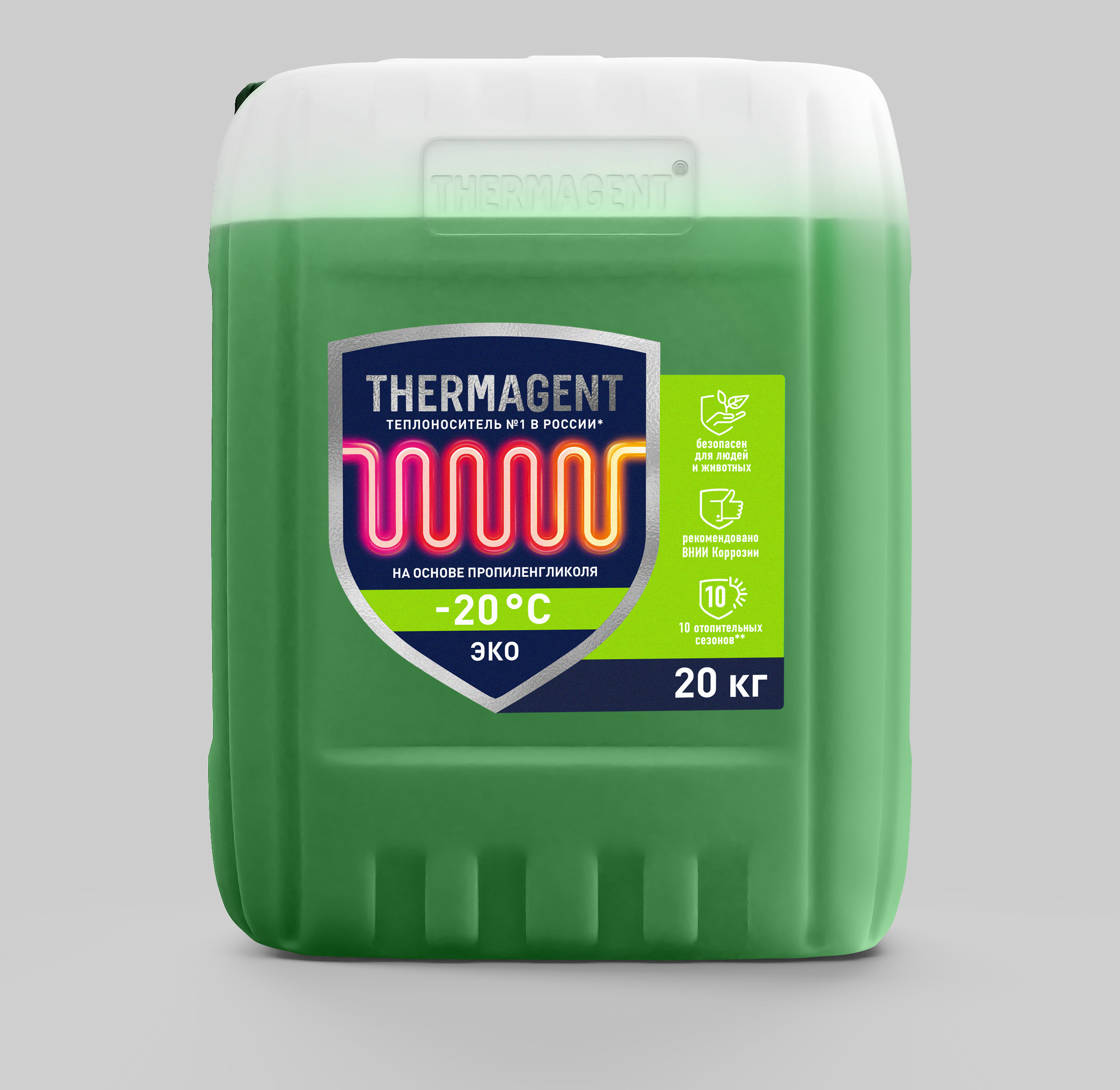 Безопасный теплохладоноситель «THERMAGENT-20 С ЭКО» выпускается на основе пропиленгликоля высшего сорта, с применением новейшей технологии «Organic Acid Technology».