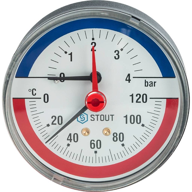 Термоманометр аксиальный Stout 1/2" 80 мм 0-120°С 0-4 бар Stout (с автоматическим запорным клапаном) (SIM-1005-800415)