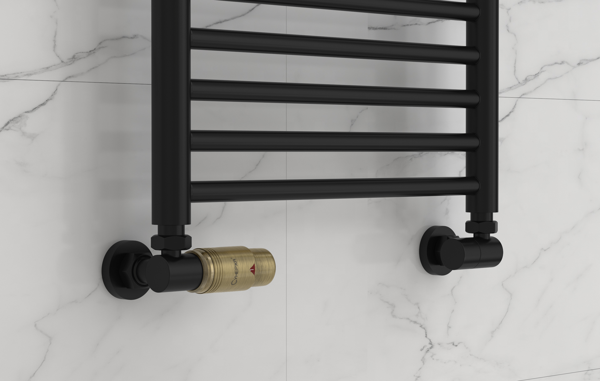Терморегулятор автоматический Сунержа 1/2"х3/4" НР/НГ 3D левый, набор, матовый черный - состаренная бронза (31-1421-6213)