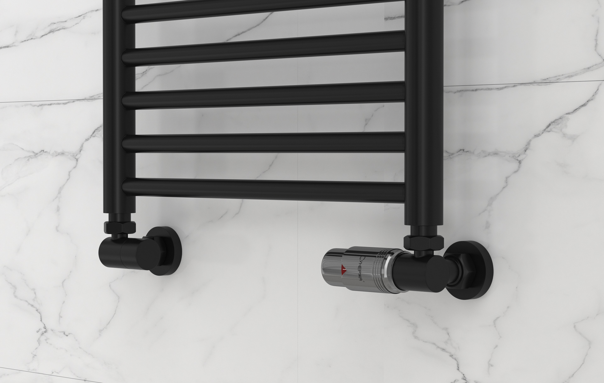 Терморегулятор автоматический Сунержа 1/2"х3/4" НР/НГ 3D правый, набор, матовый черный - чёрный хром (31-1422-6211)