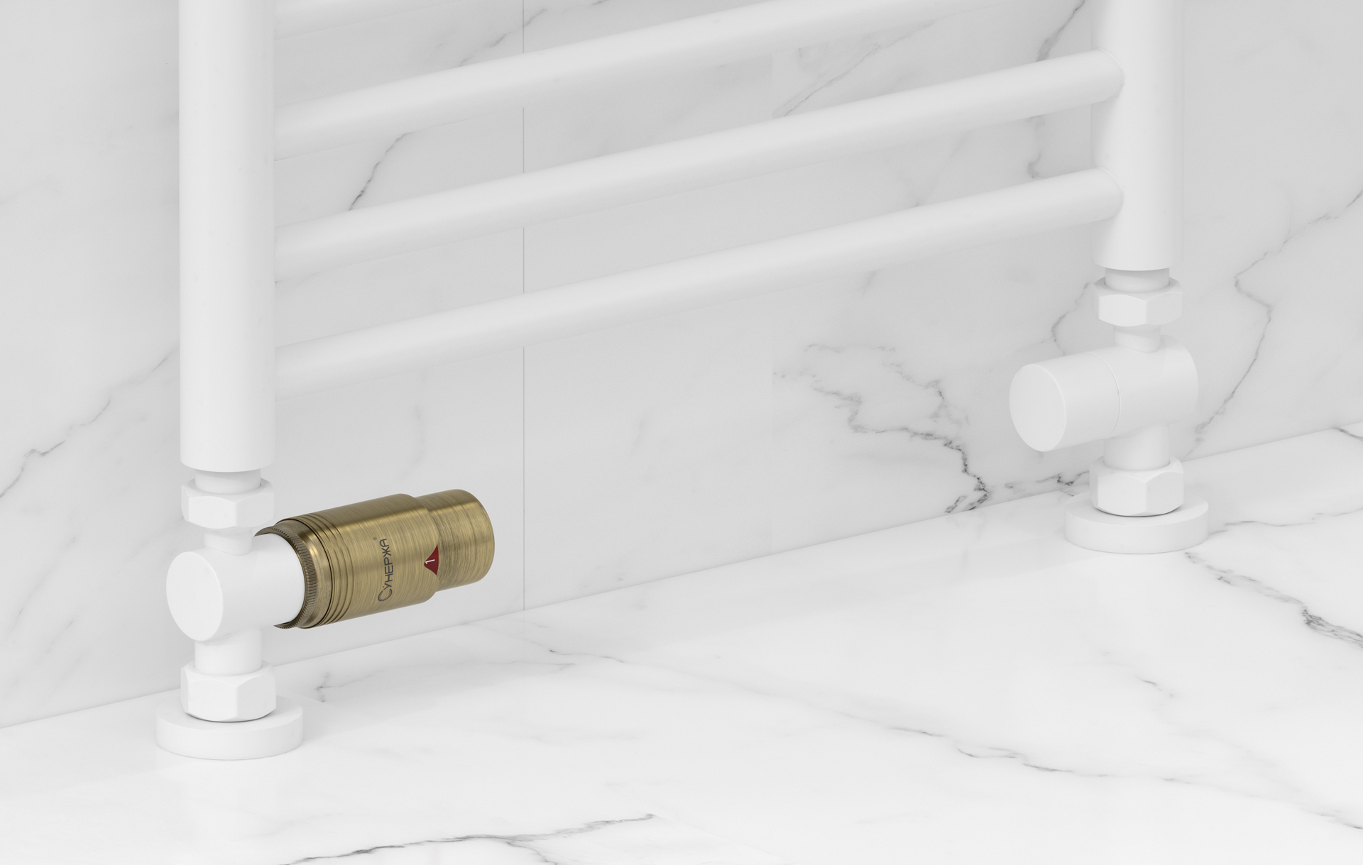 Терморегулятор автоматический Сунержа 1/2"x3/4" НР/НГ набор, прямой, матовый белый - состаренная бронза (30-1420-6213)