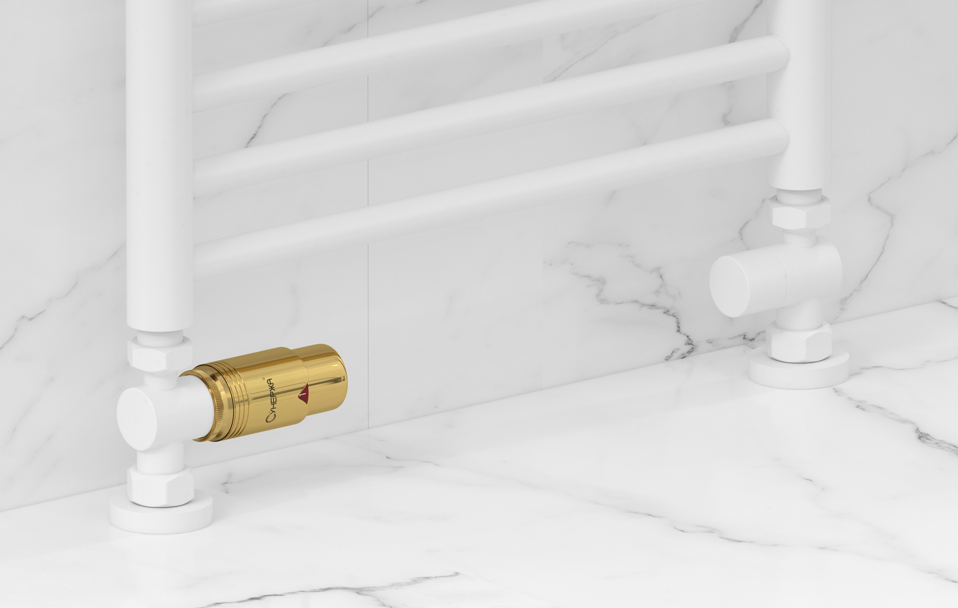 Терморегулятор автоматический Сунержа 1/2"x3/4" НР/НГ набор, прямой, матовый белый - золото (30-1420-6207)