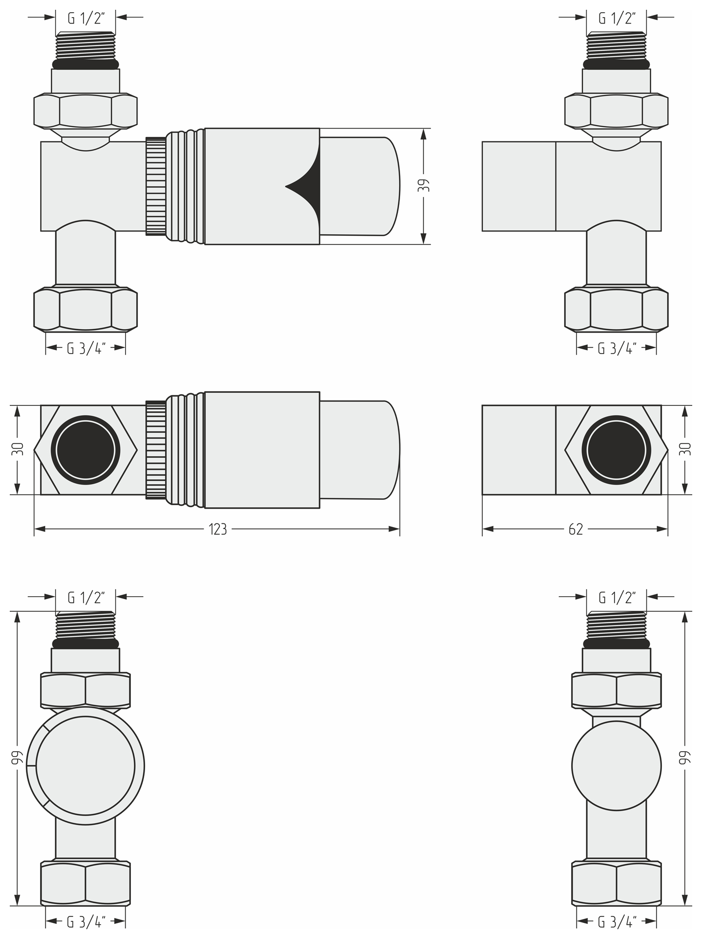 Терморегулятор автоматический Сунержа 1/2"x3/4" НР/НГ набор, прямой, матовый черный - хром (31-1420-6203)