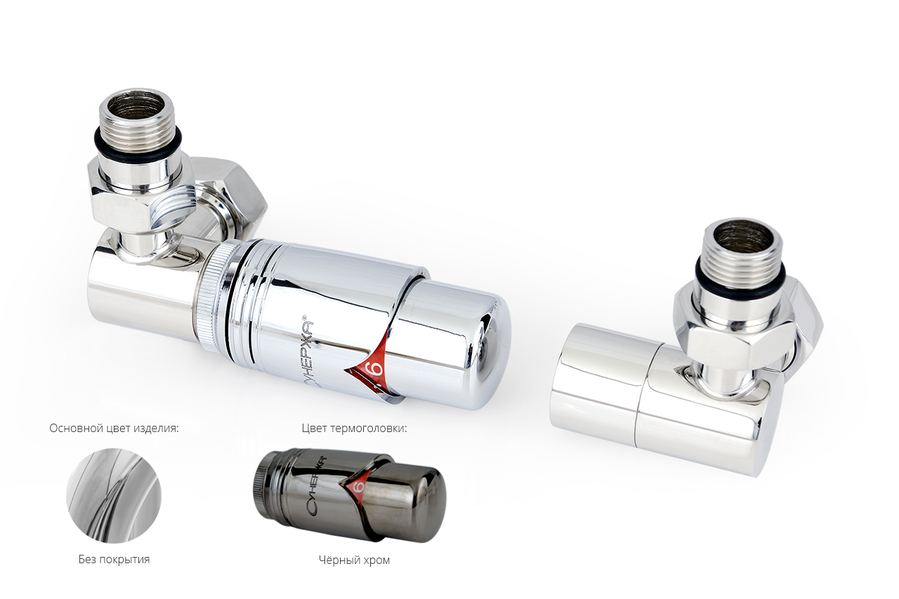 Терморегулятор автоматический Сунержа 3D левый 1/2" НРх3/4"НГ набор черный хром - черный хром (01-1421-6211)
