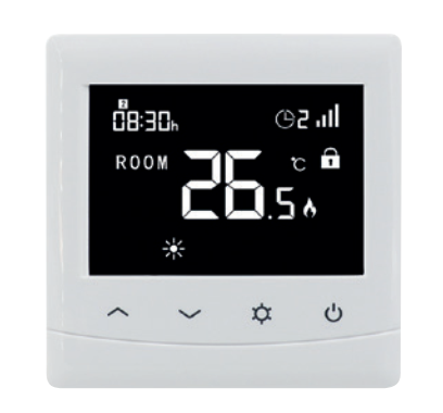 Проводные комнатные термостаты серии KW.WFHT-08 предназначены для управления радиаторным отоплением, а также системой водяных теплых полов. Комнатные термостаты обеспечивают регулирование комнатной температуры, энергосбережение и комфорт в соответствии с потребностями пользователя. Комнатный термостат KW.WFHT-08 подходят для монтажа с использованием стандартного подрозетника.
