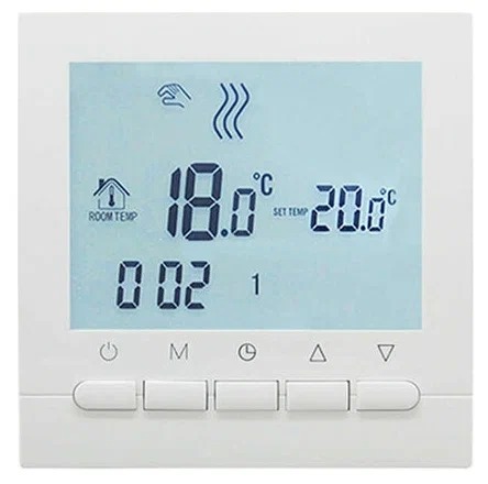Термостат имеет функцию недельного программирования, что позволяет настроить режим работы в соответствии с вашими предпочтениями. Вы можете выбрать режим работы по датчику температуры воздуха или датчику температуры пола.