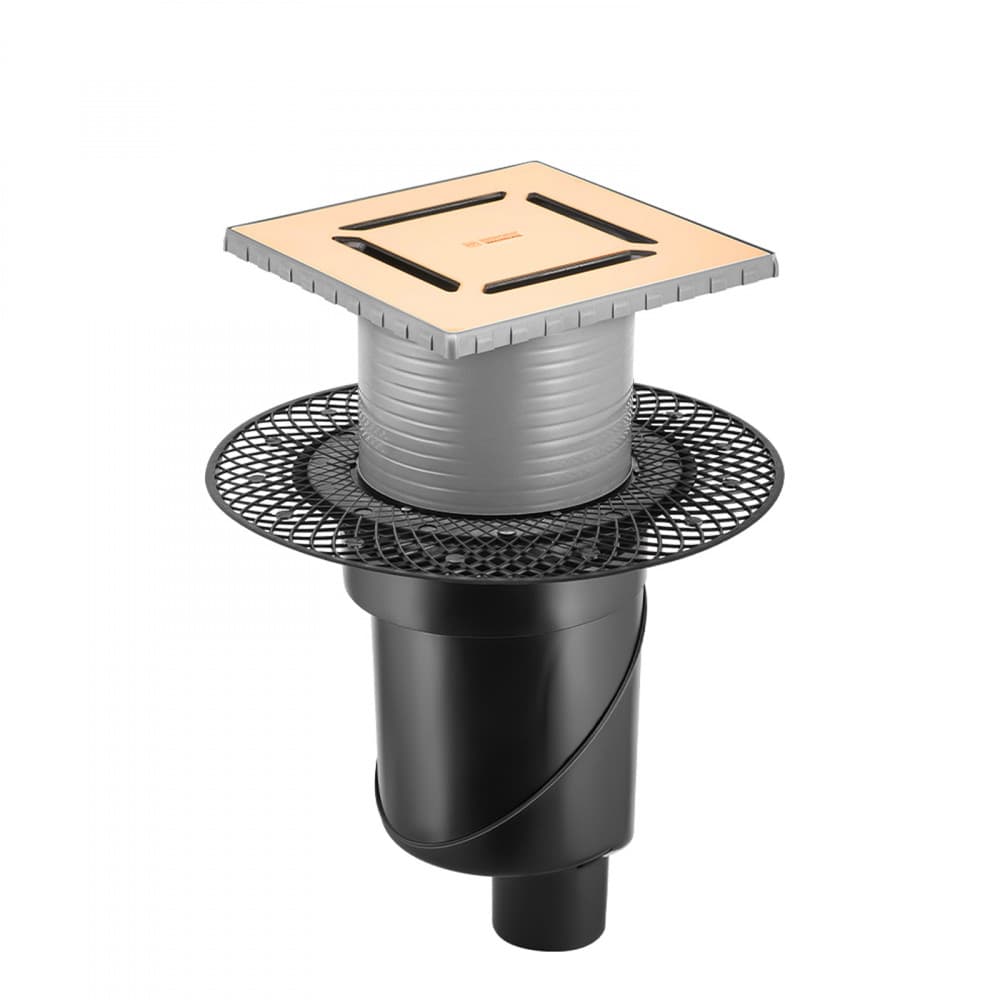 Трап Berges водосток Platz Norma 150х150, золото глянец, S-сифон D50/105 H50 вертикальный (092059)