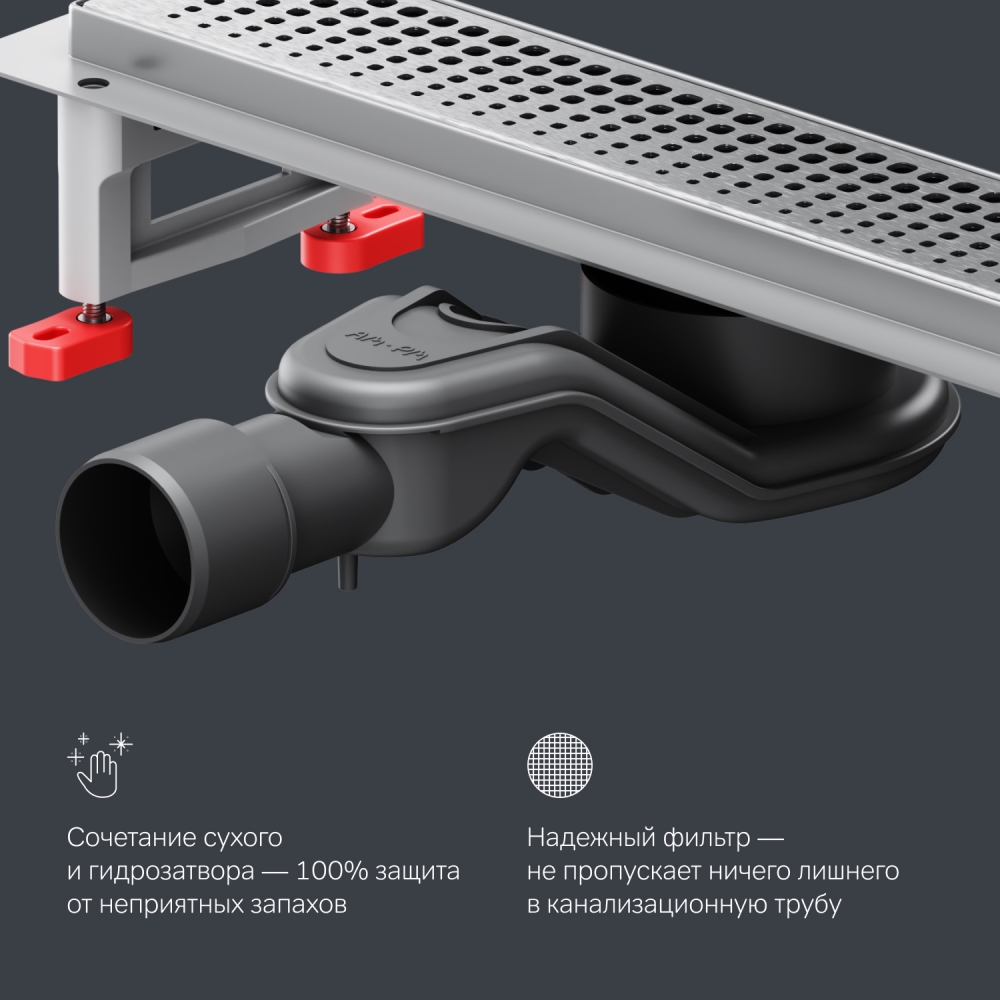 Трап для душа имеет высокую пропускную способность 50 л/мин. Обладает комбинированным затвором: сухим магнитным и гидрозатвором. Проверенная технология гарантирует 100% защиту от проникновения запахов из канализации высокую надежность и долговечность. Выдерживает даже самые большие механические нагрузки. Поворотный сифон на 360 градусов позволяет установить трап наиболее удобным и комфортным образом.