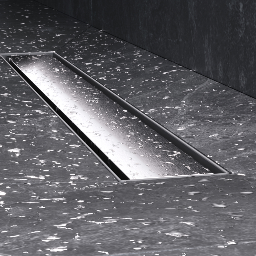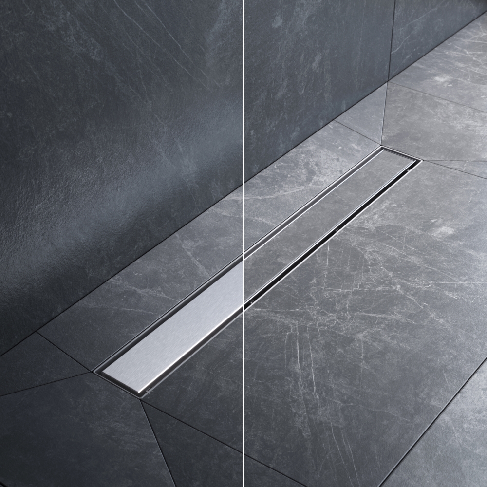Универсальная двухсторонняя решетка трапа может быть использована как самостоятельная декоративная вставка либо как база для вклейки плитки.