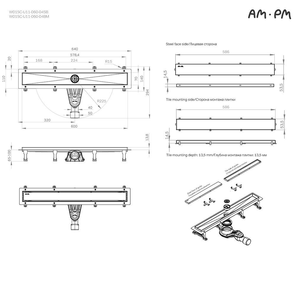 Душевой лоток AM.PM MasterFlow линейный универс затвор Tile 60 см сталь мат (W01SC-U11-060-04SB)