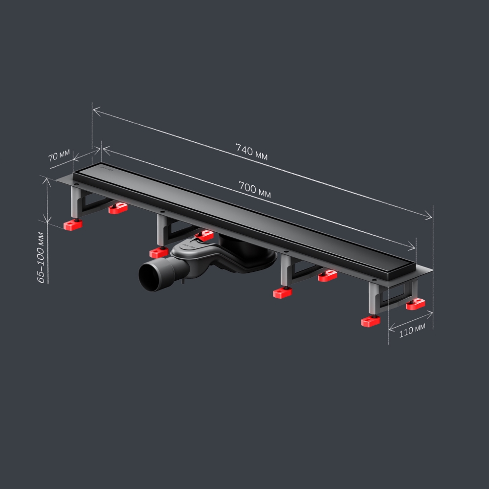 Размер изделия 70 см. Дизайн трапа выполнен в элегантном матовом черном.