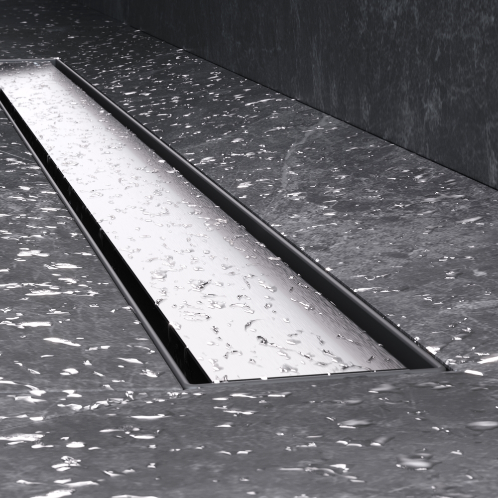 Универсальная двухсторонняя решетка трапа может быть использована как самостоятельная декоративная вставка либо как база для вклейки плитки.