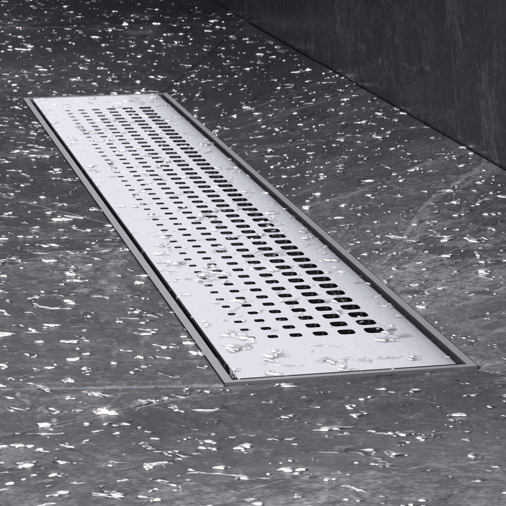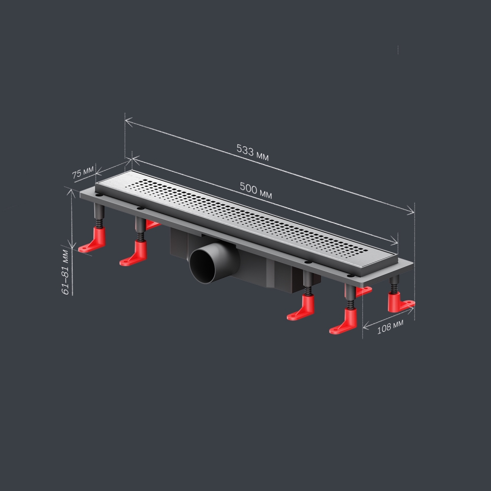 Продукт обладает низкой высотой монтажа и возможностью регулировки что предполагает экономию бюджета при заливке пола. Трап имеет инновационную конструкцию решетки с фильтром что значительно увеличивает межсервисный интервал.