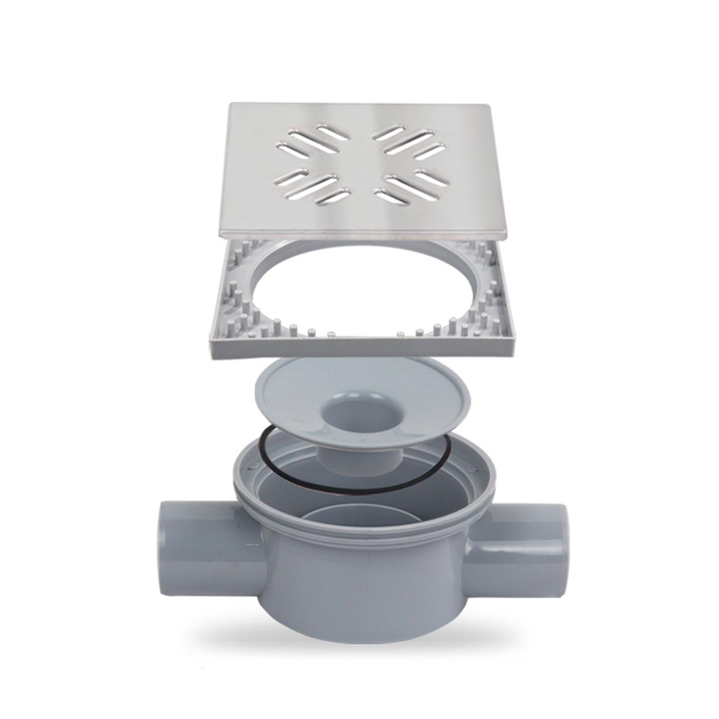 Проходной душевой трап с выпускным штуцером, с решеткой Linea, горизонтальный сифон, слив 50 мм.