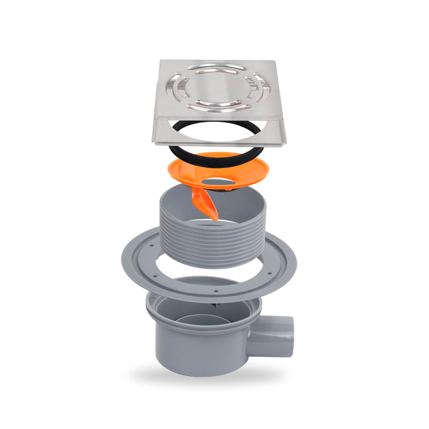 Трап для душа с решеткой Metaleks Aqua 10x10 см с сухим затвором, выход 50 мм (11.08)