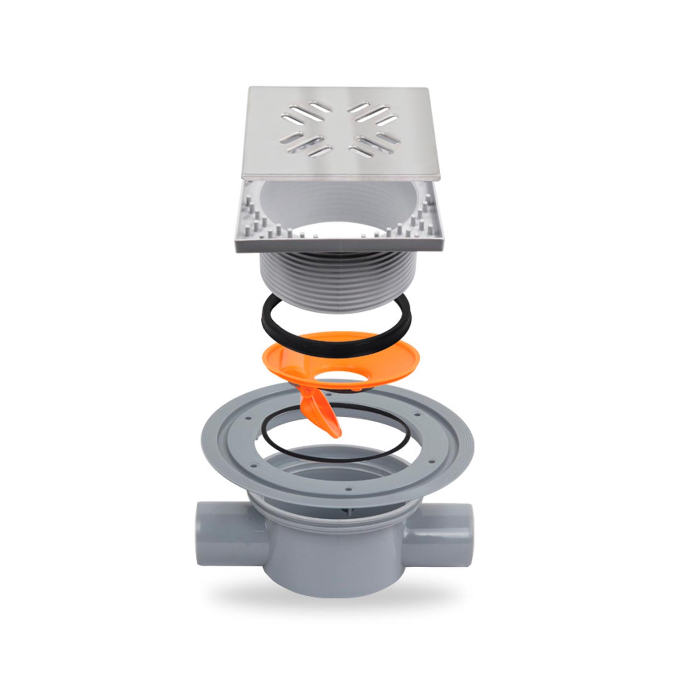Сливной душевой трап с сухим затвором, горизонтальный сифон, решетка Linea 10*10 cм, слив 50 мм.