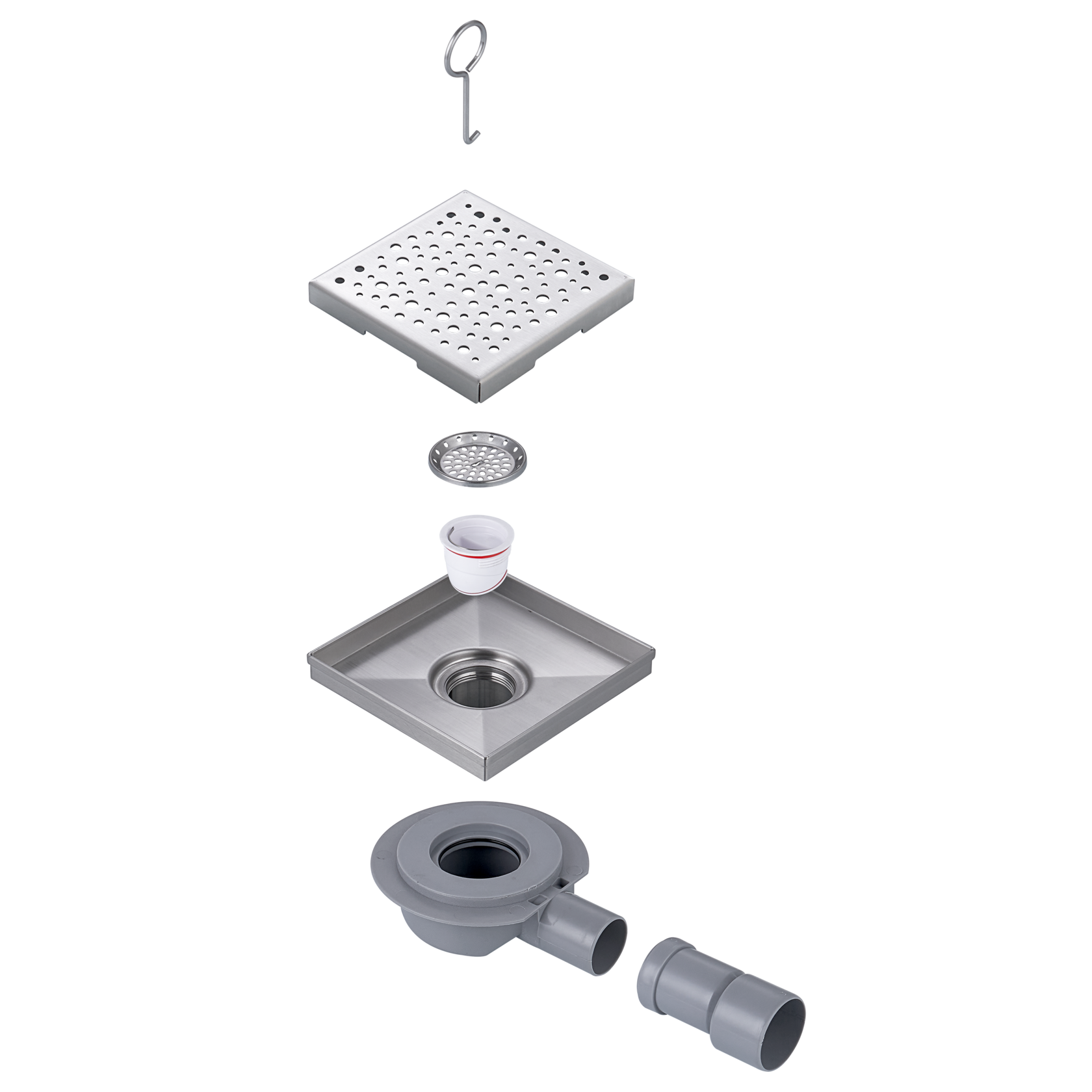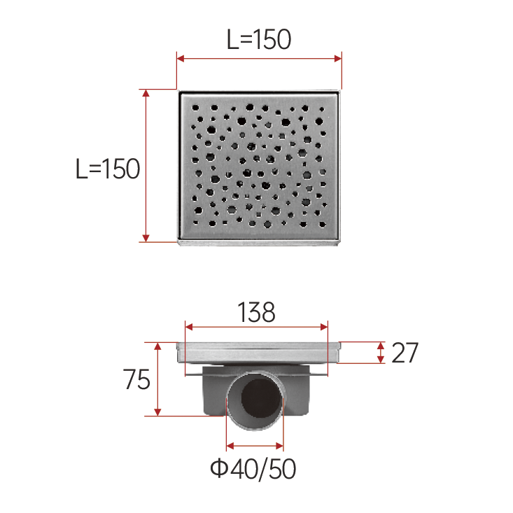 Трап душевой Fashun 150х150 горизонтальный решётка:SUS304, сифон: ABS пластик, поворот.360° (A411502)