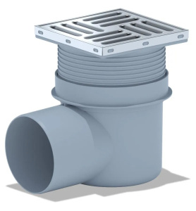 Трап горизонтальный 110 мм. (150*150) АНИ регулируемый, с гидрозатвором (решетка нерж.ст.) АНИ пласт (TA1612)