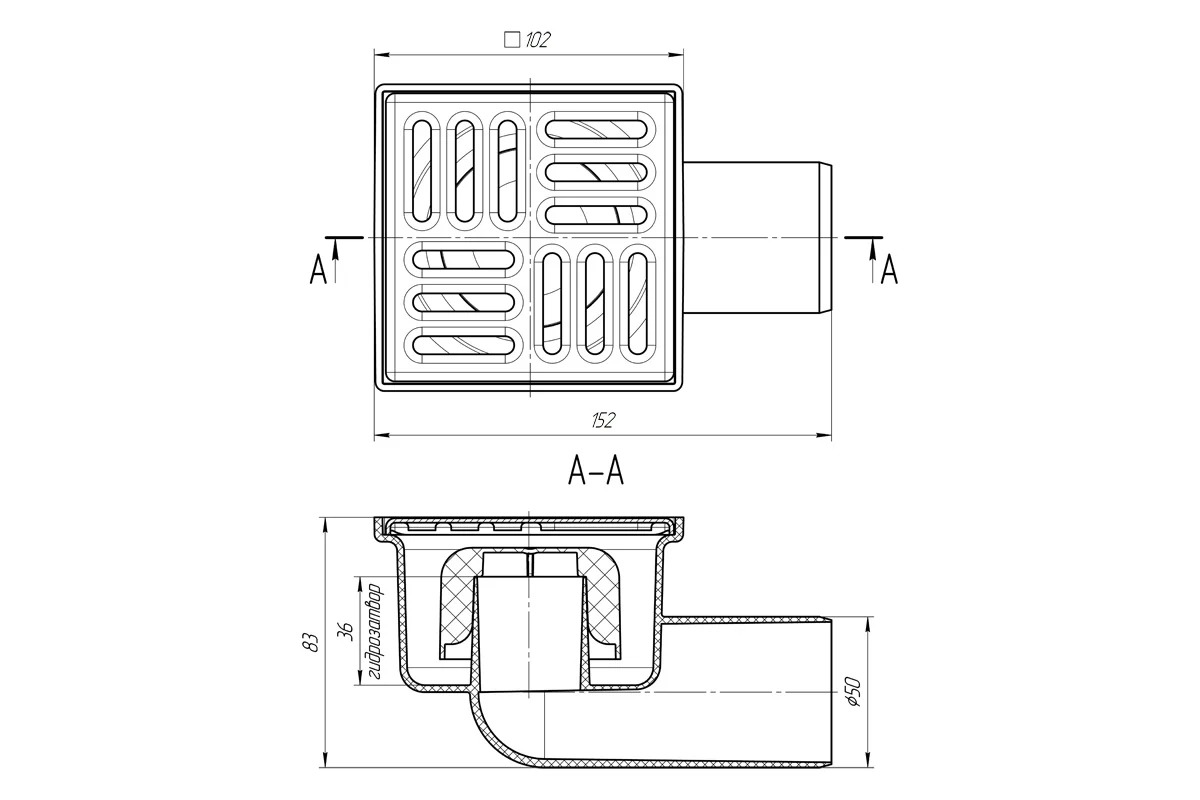 • Точечный горизонтальный сливной трап с гидрозатвором TA5102