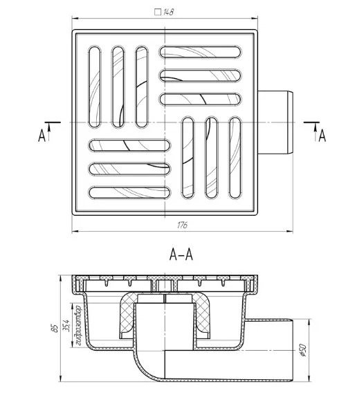 •Точечный горизонтальный сливной трап с гидрозатвором TA5110