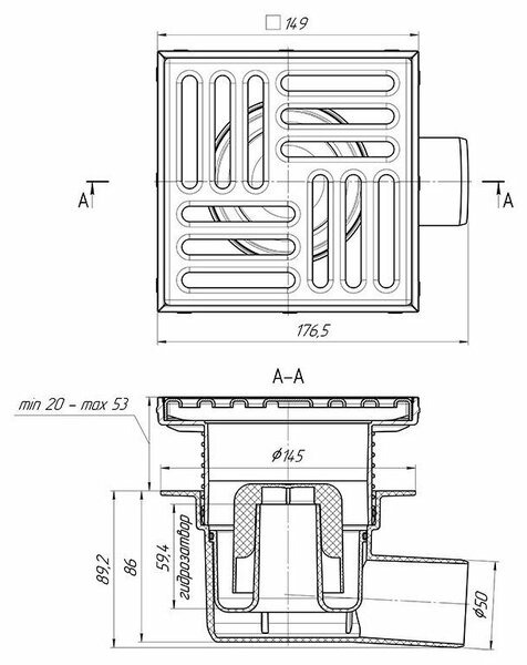 • Высота гидрозатвора: 50 мм