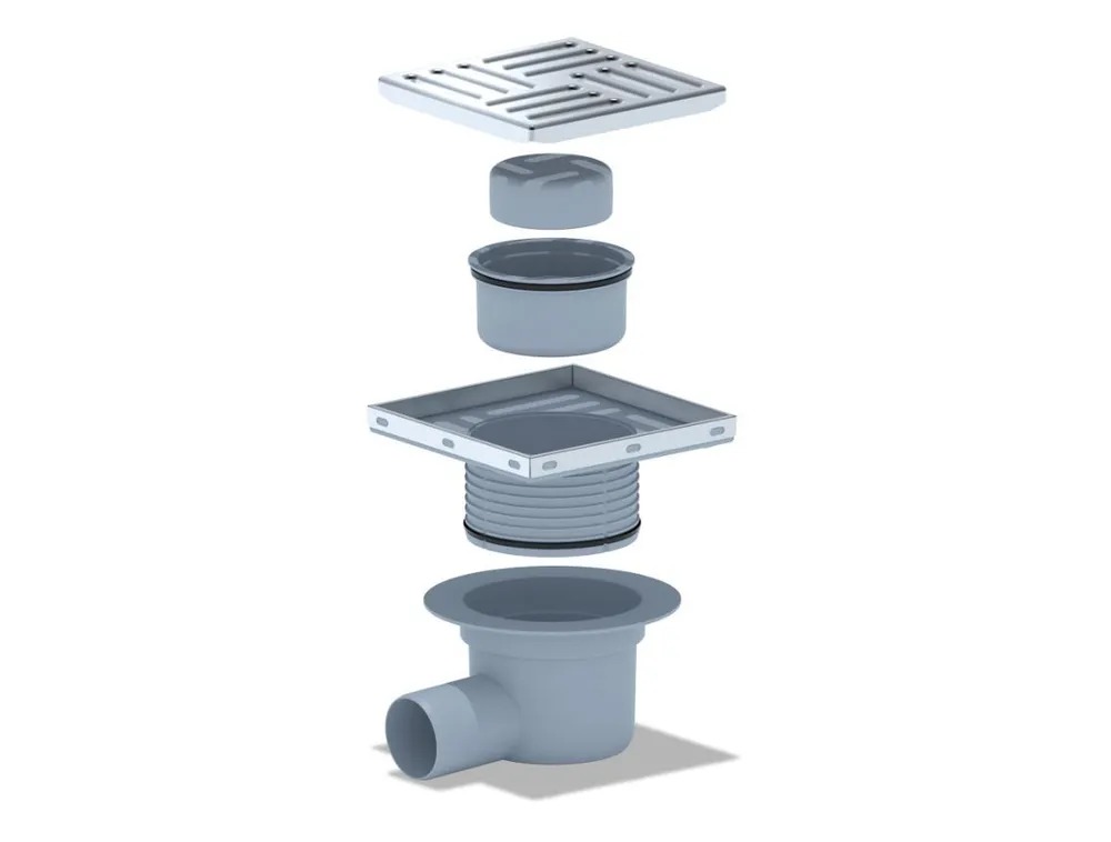 Предназначен для отвода воды из душевой комнаты или кабины в канализацию. Решетка трапа из нержавеющей стали. В трапе предусмотрен сухой затвор, который препятствует проникновению неприятных запахов из канализации. Конструкция не пропускает в сливную канализацию загрязняющие частицы, предотвращает засоры и легко чистится.