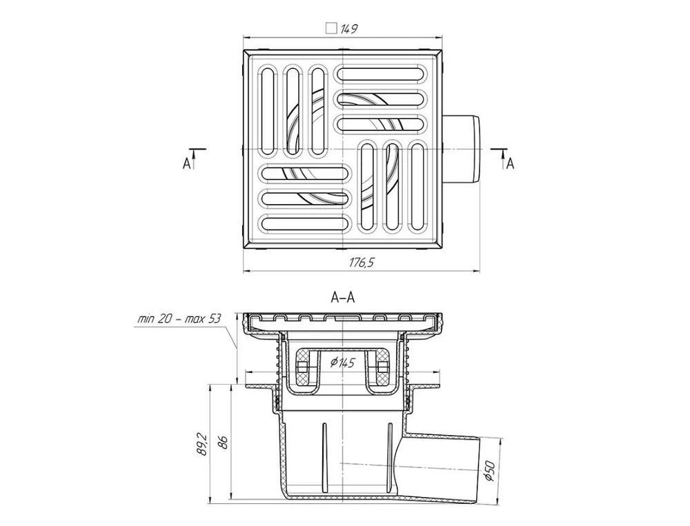 • Тип решетки слива: сталь, 150 на 150 мм