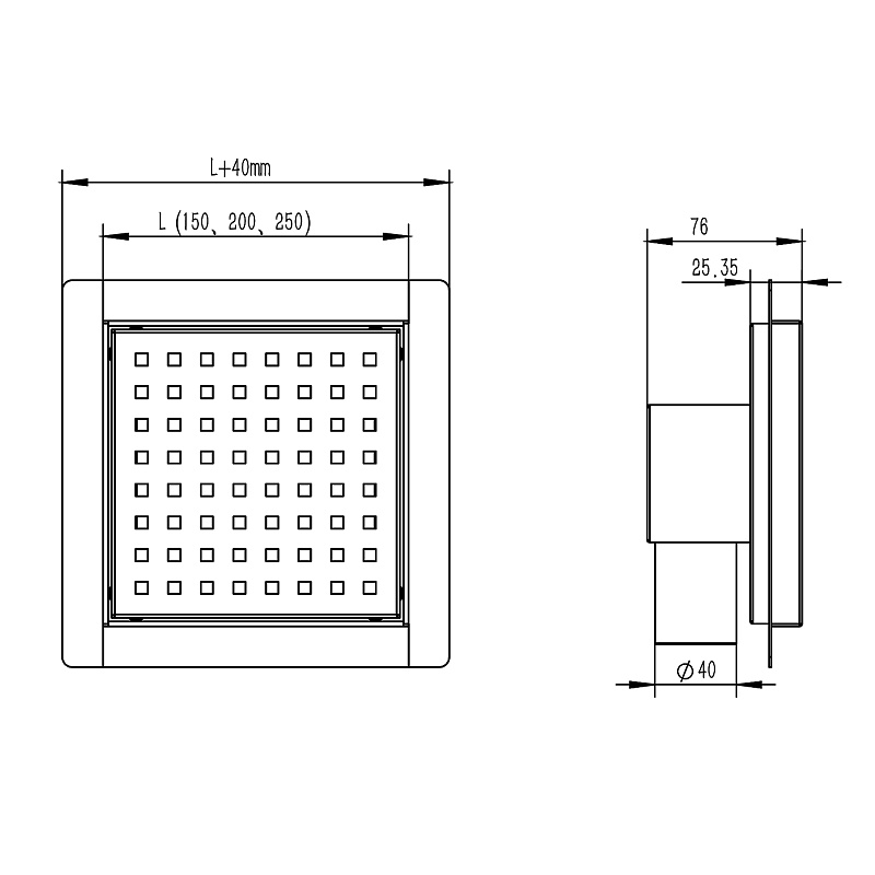 Трап горизонтальный Azario 150x150 хром (AZZ1150)