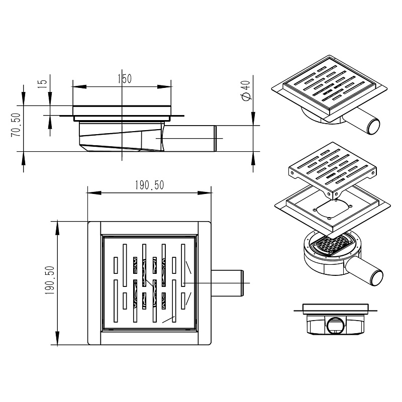 Трап горизонтальный Azario 360° 150x150 хром (AZZ3150)