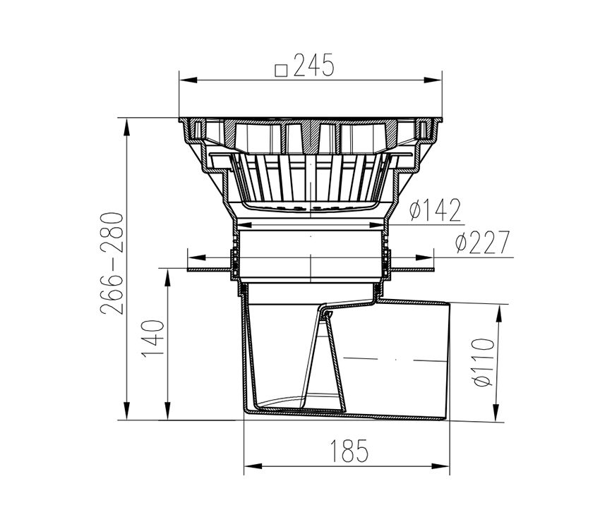 Трап канализационный MCH с боковым сливом и с воротником D110-250 чугун (замок)